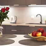 A kitchen with a microwave oven, a refrigerator, and kitchenware is provided in the apartment, along with coffee and tea making equipment. Zwyciezcow bus station is nearly 5 minutes' walk away.